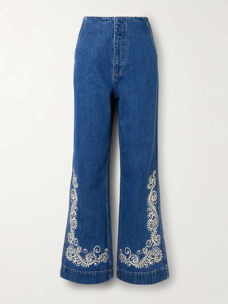 Die „Jacones“ Jeans von ALÉMAIS ist am geraden Bein mit einer detailreichen, geschwungenen Stickerei verziert, die für 70er-Jahre-Flair sorgt. Das halbhohe Modell besteht aus Denim in einer klassisch blauen Waschung.