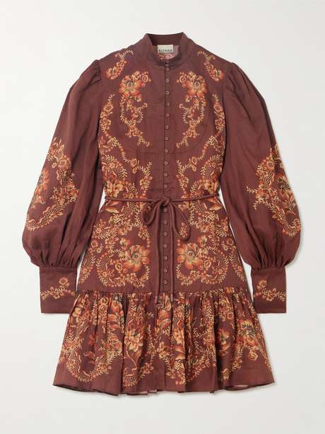 Das „Seraphina“ Minikleid von Alémais ist locker geschnitten und wirkt ansprechend leger. Das Modell aus Ramie mit Blumenprint hat bauschige Bündchenärmel und einen farblich passenden Bindegürtel, der die Taille betont. Wir empfehlen schicke Ankle Boots dazu.