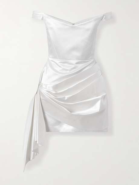 Dieses Minikleid von Alex Perry besteht aus einer fließenden Baumwoll-Seidenmischung und wirkt in Bewegung äußerst eindrucksvoll. Das Modell wurde mit einem eleganten schulterfreien Ausschnitt designt und an der Vorderseite der etwas bauschigen, asymmetrischen Rockpartie auf besonders gekonnte Weise in Falten gelegt.