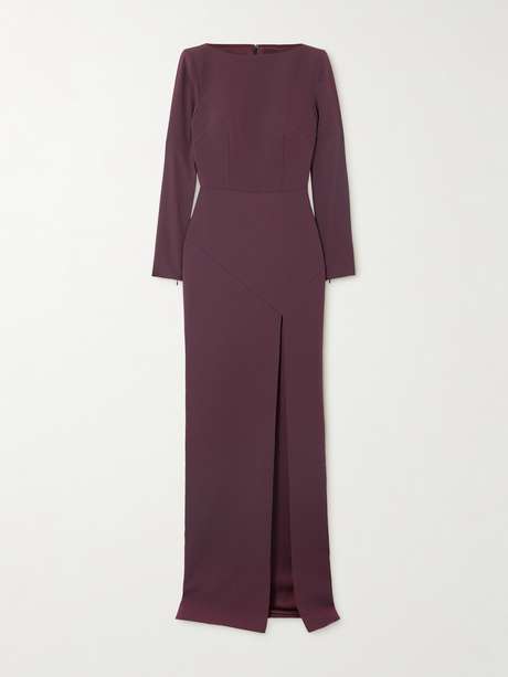 Der Grund, warum man die Designs von Alex Perry oft auf dem roten Teppich sieht, ist einfach: Sie sind unbestreitbar glamourös. Diese bodenlange Robe aus glattem Crêpe ist so geschnitten, dass das Auge wie von selbst zu dem hohen Schlitz an der Vorderseite hinwandert.