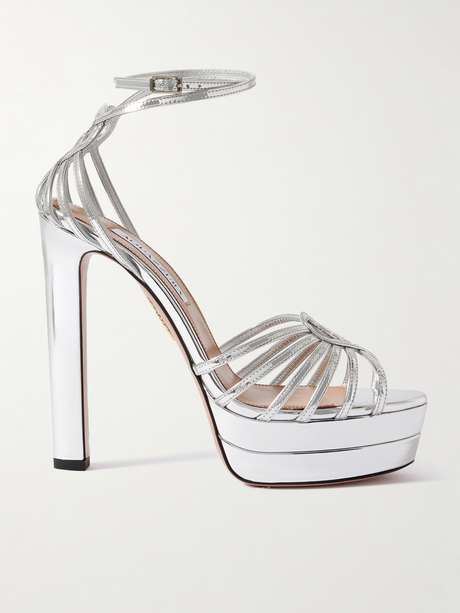 AQUAZZURA Sweetheart 130 Plateausandalen aus Metallic-Leder