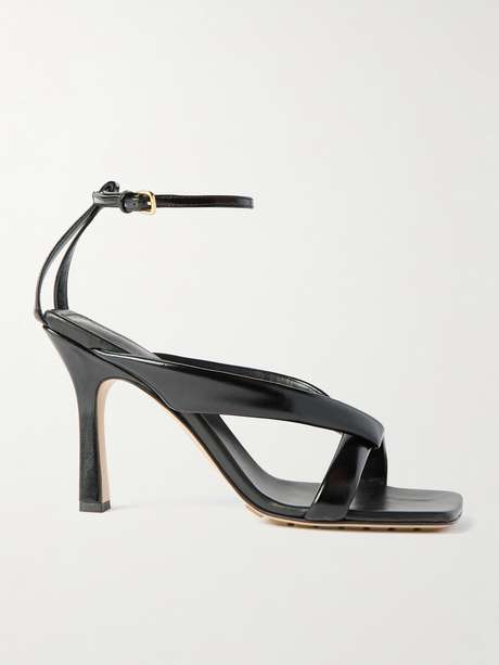 Die Riemen der „Riva“ Sandalen von Bottega Veneta sind leicht gepolstert und somit nicht nur angenehm weich, sondern auch etwas voluminöser. Das in Italien gefertigte Modell aus Glanzleder wurde mit einer schicken karreeförmigen Zehenpartie und einem skulpturalen Absatz mit einer Höhe von 90 Millimetern gestaltet. Zu guter Letzt ist die Sohle dank einer Gummibeschichtung rutschfest.