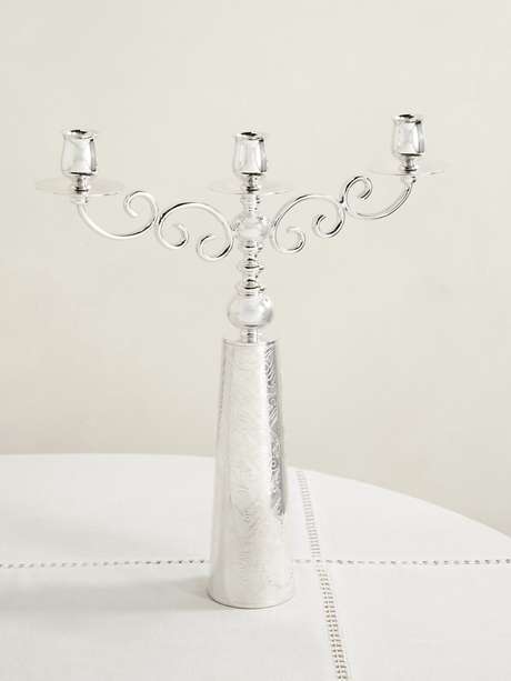 Diesen Kerzenständer von Christofle schmücken wunderschöne Gravuren in Form von Ranken und aufblühenden Blumen: Beim Entwerfen jener diente dem Designer Marcel Wanders der Garten Eden als Inspiration. Das in Italien aus hochglänzendem, versilbertem Metall gefertigte Modell kann mit drei langen Kerzen bestückt werden, die Ihren Esstisch wunderbar aufleuchten lassen.