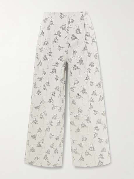 DESTREE designte die „Martha“ Hose mit einem eingearbeiteten Blumenmuster, das dem Modell aus Denim Tiefe sowie eine kunstvolle Note verleiht. Es hat ein weites Bein mit Bundfalten, die optisch die Figur strecken, und wirkt in Kombination mit einer der verkürzten Jacken der Marke besonders elegant.