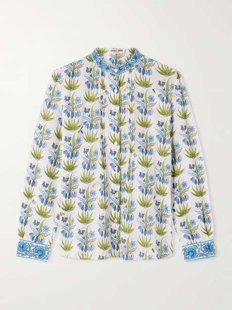 EMPORIO SIRENUSE Chiara Celestine Hemd aus Baumwoll-Voile mit Blumenprint und Falten