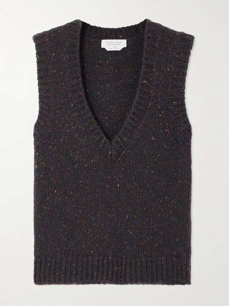 Der zertifizierte Kaschmir des „Solomon“ Pullunders von Gabriela Hearst hat bunte Einsprengsel, was an klassische Donegal-Varianten denken lässt. Das Modell zeichnet sich zudem durch einen V-Ausschnitt sowie gerippte Kanten aus und wird idealerweise mit dem passenden „Eden“ Rock getragen.