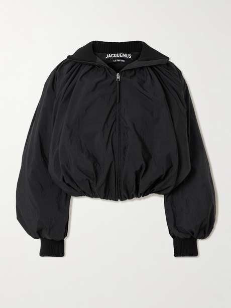 Jacquemus baute sich dank des besonderen Designansatzes, Klassiker neu zu interpretieren, eine große Fangemeinde auf. Die „The Pallone“ Bomberjacke aus leichtem, mattem Shell zeigt sich dabei mit einem auffälligen Schnitt, der an Fallschirmvarianten erinnert, und hat eine dezente Wattierung, die wärmt und mit zur Form beiträgt.