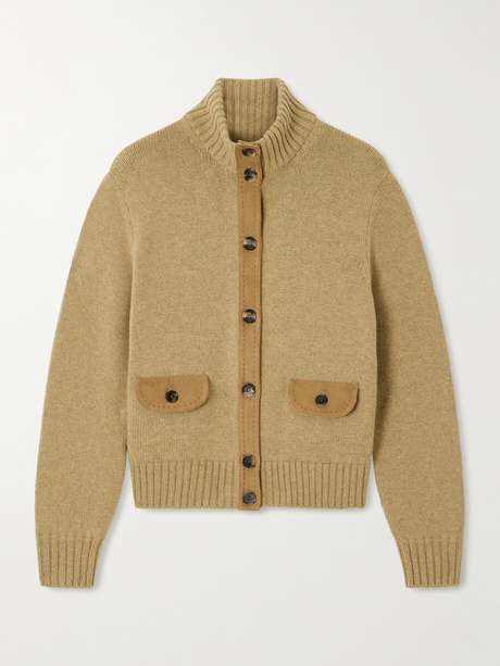 LORO PIANA Parksville Cardigan aus Kaschmir mit Velourslederbesätzen