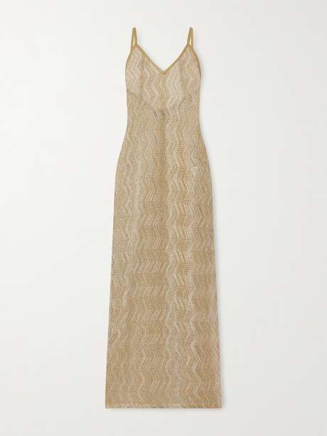 Für den Urlaub empfehlen wir unkomplizierte Kleidungsstücke, die sich für verschiedene Anlässe eignen – wie zum Beispiel dieses Strandkleid von Missoni Mare. Das Modell besteht aus goldfarbenem Häkelstrick, der in der Sonne schimmert und beim Abendessen im Freien ebenso elegant wirkt. Es hat einen V-Ausschnitt, ansprechende Seitenschlitze und einen tiefen Rückenausschnitt.