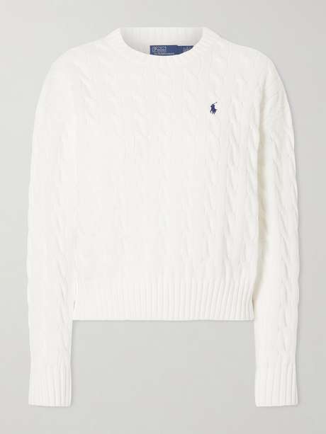 Für einen Pullover ist Zopfstrick das klassische Muster schlechthin. Dieses Modell von Polo Ralph Lauren besteht aus luftdurchlässiger Baumwolle und ist mit dem bekannten Pferdelogo der Marke in einer Kontrastfarbe bestickt.