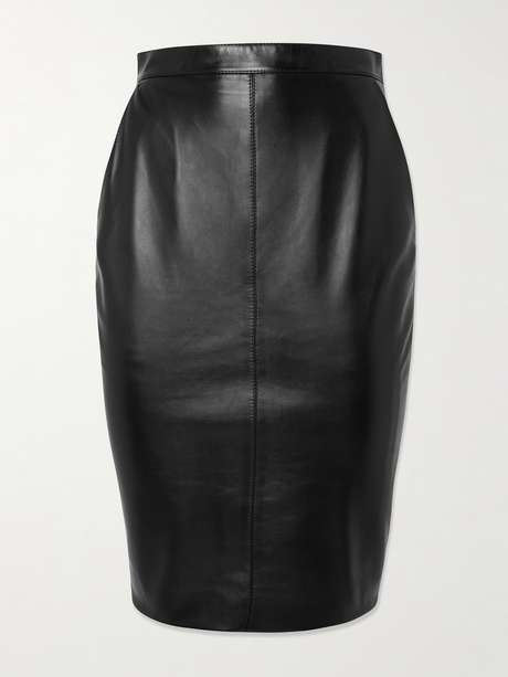 Dieser knielange Rock von SAINT LAURENT ist ausgesprochen schick. Er hat einen hohen und Bund ist besonders schlicht gehalten. Tragen Sie eine Seidenbluse oder einen Strickpullover dazu.