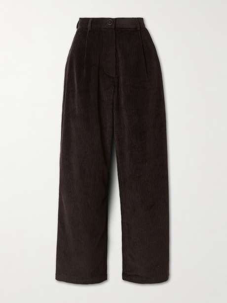 The Frankie Shop fokussiert sich auf klassische Schneiderkunst. Die „Norstrand“ Hose aus Baumwollcord wurde am lockeren, geraden Bein mit einer Bügelfalte designt.