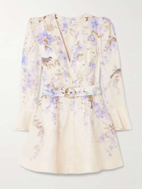 ZIMMERMANN Luna Minikleid aus Leinen mit Blumenprint und Gürtel