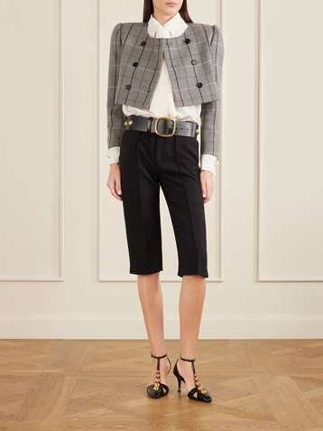 Caprihose aus Woll-Crêpe mit geradem Bein und Schnallen