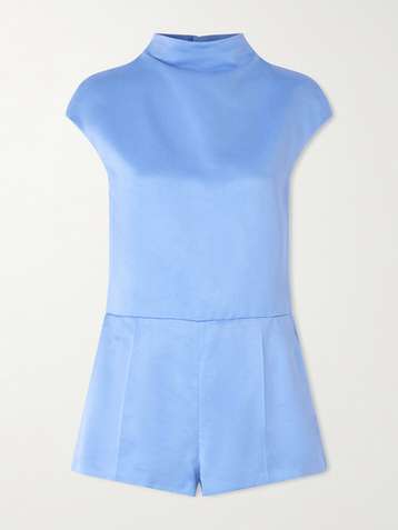 Playsuit aus Duchesse-Satin aus einer Baumwoll-Seidenmischung mit Stehkragen und Rückenausschnitt
