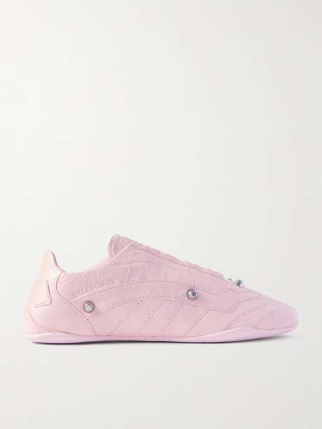 Die „City“ Sneakers von Balenciaga teilen mehr als nur ihren Namen mit den ikonischen Taschen des Hauses, denn auch die markentypischen Nietenverzierungen sind präsent. Das eher schmale Paar ist gestalterisch an klassischen Laufsportmodellen orientiert und besteht aus dezent geknittertem Leder mit Logoprägung.