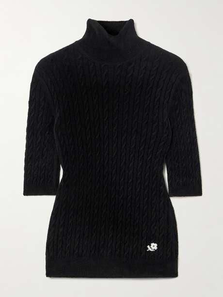 BERNADETTE Noa kurzärmeliger Stehkragenpullover aus Chenille in Zopfstrick mit Stickerei