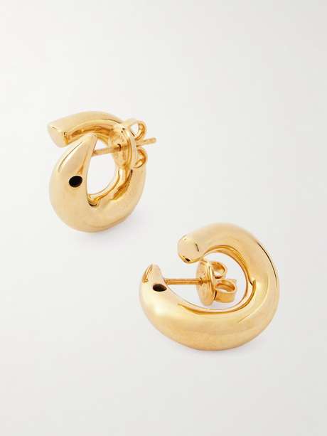Diese Ohrringe von Bottega Veneta ähneln den charakteristischen Griffen an den verspielten Taschen aus der „Sardine“-Kollektion der Marke. Das Paar besteht aus vergoldetem Silber und hat eine markant geschwungene Form.