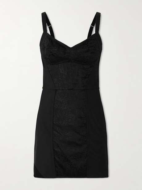 Die Vorliebe von Dolce&Gabbana für die Korsett-Ästhetik lässt sich auch an diesem Minikleid ablesen. Es besteht aus Jersey und hat Bügel-Cups sowie eine Spitzenpartie, die vorne einen dezenten Strukturkontrast setzt.