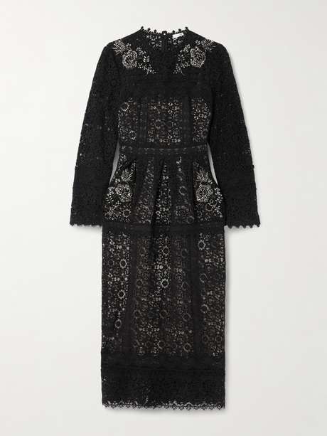 ERDEM Midikleid aus Guipure-Spitze aus Baumwolle mit Kristallen