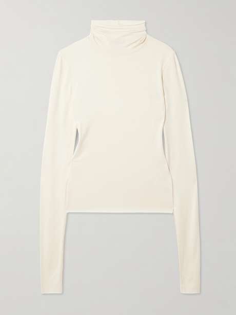Dieses Oberteil von Éterne spricht wunderbar für sich, lässt sich aber ebenso gut unter einer Weste oder einem Blazer tragen. Das in Amerika aus besonders weichem Stretch-Modal-Jersey gefertigte Modell liegt eng an und hat einen Stehkragen.