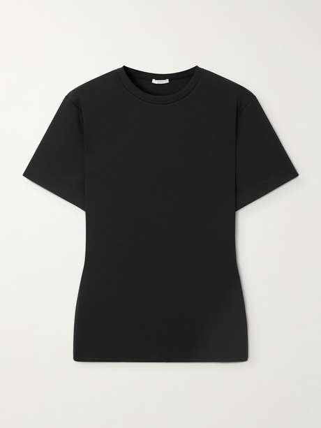 Für FFORME sind Basics etwas, mit dem man auch wunderbar experimentieren kann, weshalb das „Romi“ T-Shirt der Marke aus dehnbarem Scuba besteht. Es hat eine breite Schulterpartie, die im Kontrast zum schmalen Taillenbereich steht, und ist mit kurzen, recht weiten Ärmeln ausgestattet.