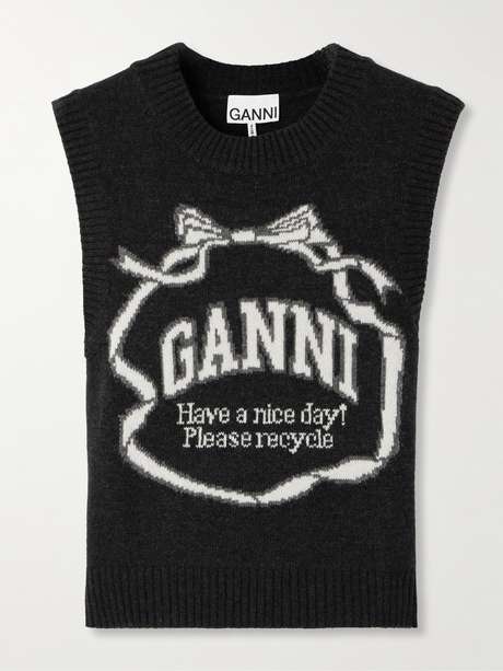 GANNI Pullunder aus einer Wollmischung mit Intarsienmotiv