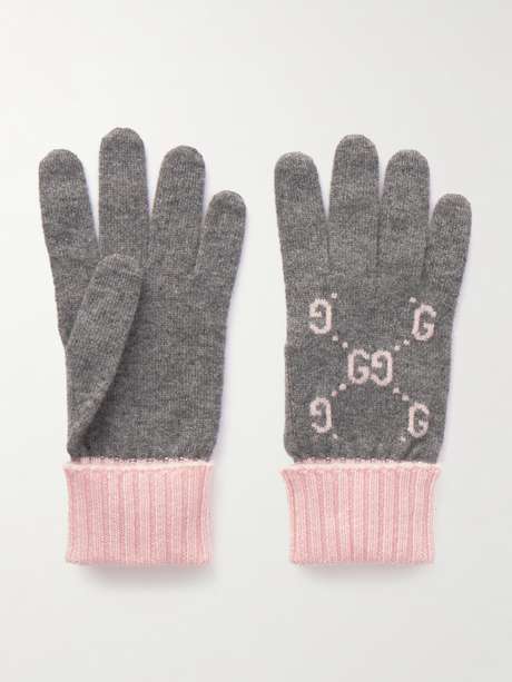 Diese Handschuhe von Gucci sind nicht nur flauschig, sondern passen zu so gut wie allen Mänteln und Jacken aus Ihrer Garderobe. Das Paar aus wärmendem Kaschmir zeigt sich mit dem Logomotiv in Jacquard-Strick sowie einem gerippten, umgeschlagenen Abschluss.