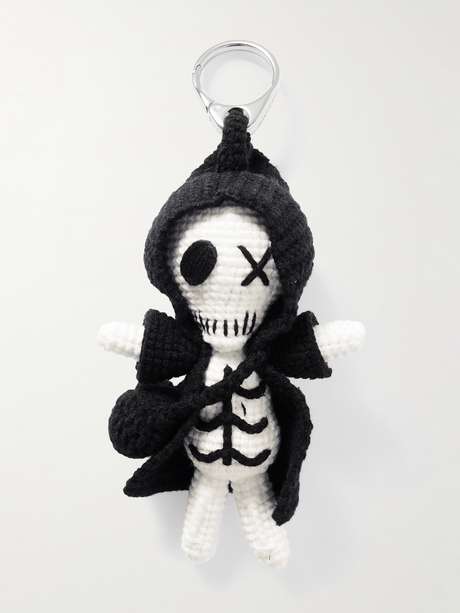 Dieser Anhänger von McQueen ist eine Variation des markenypischen „Skull“-Motivs – es stellt eine Voodoo-Puppe in Skelettform dar und besteht aus einer gehäkelten Baumwollmischung. Das Modell kann mittels einer silberfarbenen Schnalle an Ihrem Schlüsselbund oder dem Henkel einer Tasche angebracht werden.