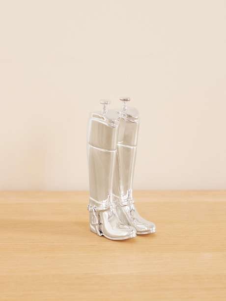 Die Kollektionen von Ralph Lauren Home greifen gestalterisch oft traditionellen Reitsport auf, wie auch dieser Briefbeschwerer in Form eines Paars Cowboystiefel beweist. Er besteht aus versilbertem Messing mit filigranen Gravuren, dank derer er besonders realistisch wirkt.