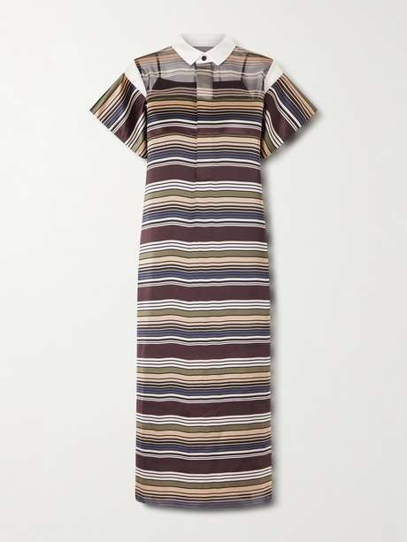 SACAI Midi-Hemdblusenkleid aus gestreiftem Organza und Satin