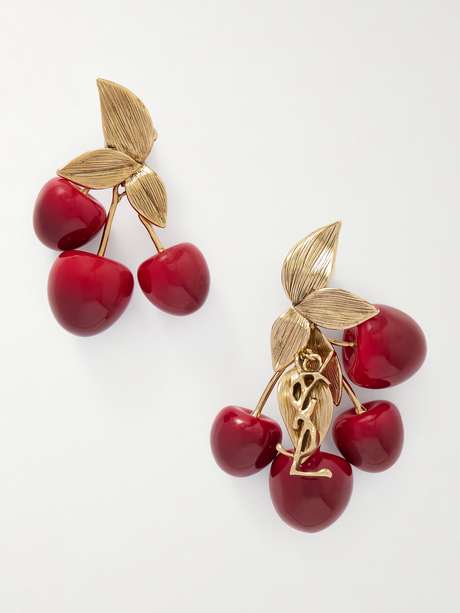 SAINT LAURENT Cerises Ohrclips aus Harz mit goldfarbenen Details