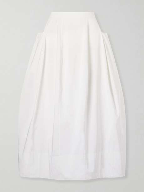 Der „Lantern“ Rock von Tibi wurde so benannt, da der Schnitt entfernt an eine Papierlaterne erinnert. Das Modell besteht aus japanischem Shell, das wunderbar griffig ist und zudem seine Form gut behält.