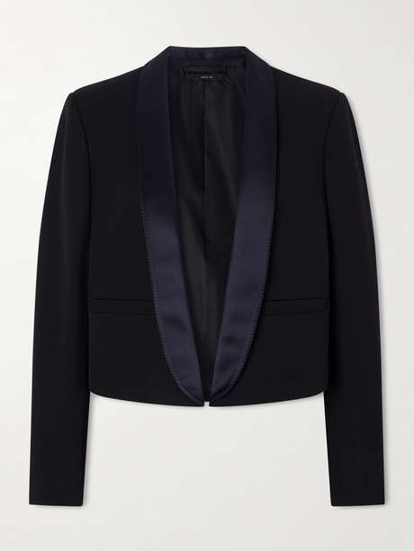 TOM FORD Verkürzter Blazer aus Grain de Poudre aus Wolle mit Seidensatinbesatz