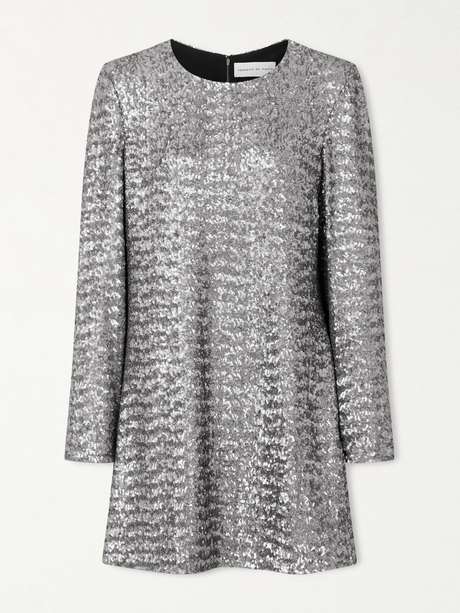 Das „Layla“ Kleid von Veronica de Piante ist über und über mit Pailletten bedeckt, dank derer es sich durch eine glitzernde Metallic-Optik auszeichnet. Es besteht aus Tüll und hat eine lockere Shift-Silhouette.