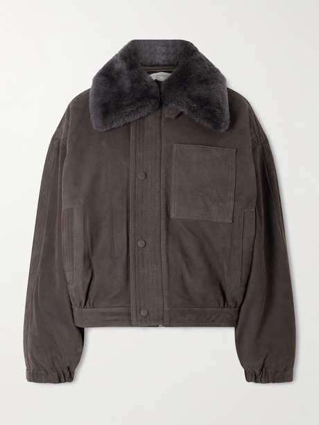 VICTORIA BECKHAM Bomberjacke aus Nubukleder mit Shearling-Besatz