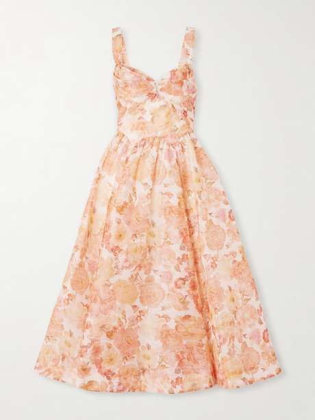 ZIMMERMANN Rebellion Midikleid aus einer Leinen-Seidenmischung mit Blumenprint