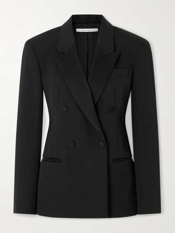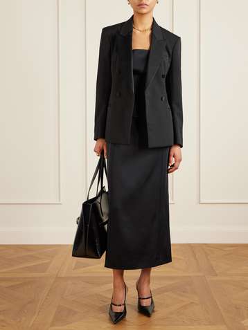 Doppelreihiger Blazer aus Twill einer Wollmischung mit Satinbesätzen