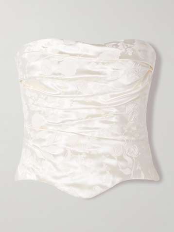 Demi trägerloses, bemaltes Bustier aus Satin aus einer Seiden-Wollmischung mit Raffungen
