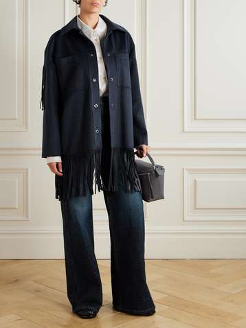 Midnight Cowboy Jacke aus Kaschmir mit Fransen aus Veloursleder