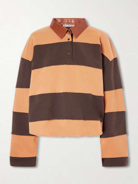 ACNE STUDIOS Folio Sweatshirt aus Baumwoll-Jersey mit Streifen und Lederbesatz