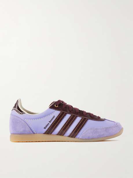 Die Modelle, die Wales Bonner für adidas Originals entwirft, sind immer schnell vergriffen. Diese lavendelfarbene Version der „Japan“ Sneakers aus der neuen Kollektion besteht aus Canvas, wobei für die Kappe und den Fersenbesatz mit Details im Überwendlichstich Veloursleder gewählt wurde. Lederne Streifen in Kontrastfarbe runden das Paar ab.
