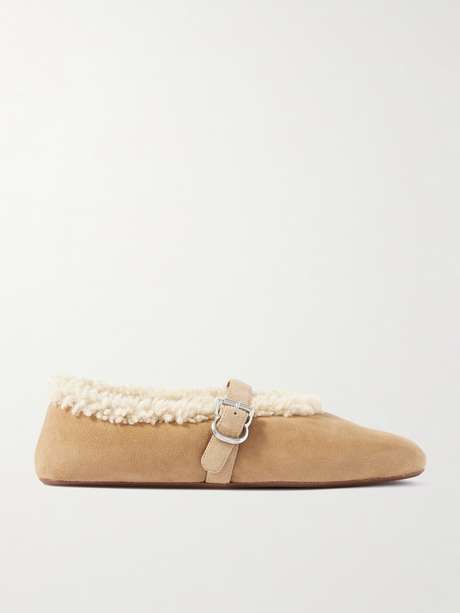 Diese Ballerinas von Alaïa sind an die zeitlosen Schuhe Japans angelehnt, weisen allerdings ein herrlich weiches Futter auf. Das in Italien gefertigte Paar mit runder Kappe besteht aus geschmeidigem Shearling und hat einen verstellbaren Riemen mit Schnalle.