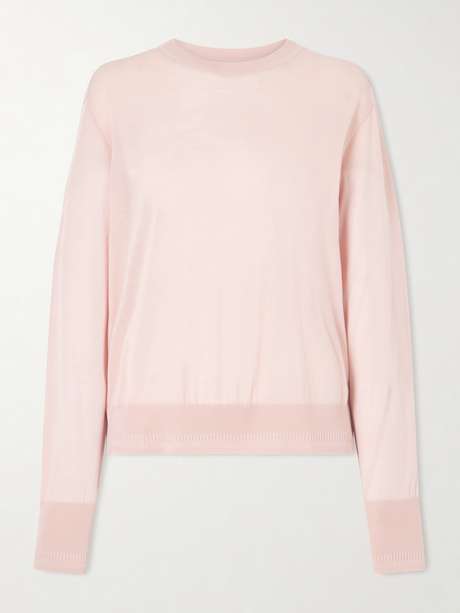 Dieser bequeme Feinstrickpullover von Another Tomorrow besteht aus Merinowolle und hat gerippte Abschlüsse. Da das Modell besonders leicht ist, findet es in praktisch jeder Tote Platz und lässt sich auch gut um die Schultern binden.