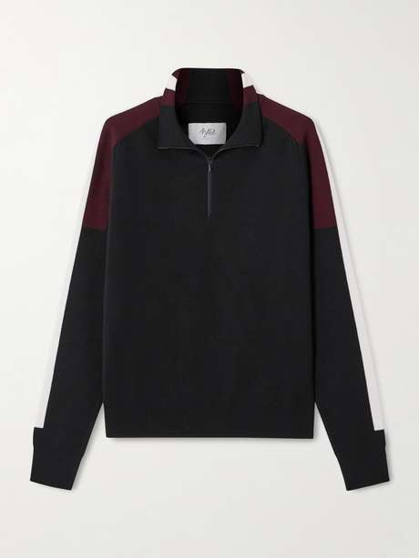 Der „Caroline“ Pullover von Aztech Mountain vereint laut der Marke sportliches mit elegantem Design. Das in Italien gefertigte Modell aus einer wärmenden Wollmischung hat einen Stehkragen mit Reißverschluss und kontrastierende Streifen in Colour-Block-Optik. Betonen Sie den Bordeauxrotton mit einer gleichfarbigen Skihose.