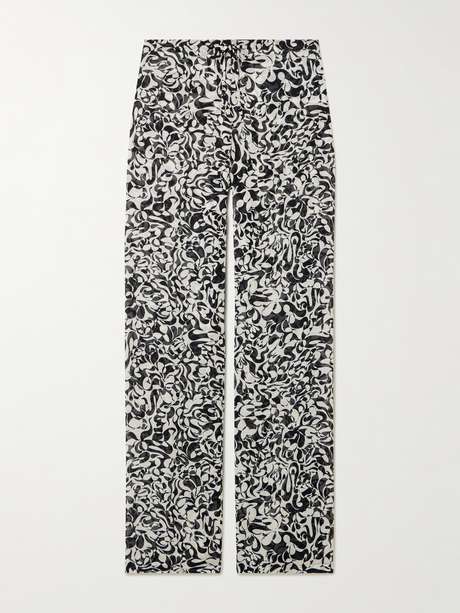 Diese Hose von Dries Van Noten ist mit einem auffälligen Muster aus markant geschwungenen Motiven bedruckt, das an die 1970er-Jahre erinnert. Das hoch sitzende Modell aus luftigem Chiffon hat ein gerades Bein und einen Kordelzugbund.