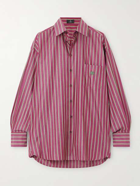 Bei der H/W 25-Laufstegshow von Etro wurde eine eindrucksvolle Fusion aus Maximalismus und dem Bohème-Flair der Marke präsentiert. Dieses Hemd aus Baumwollpopeline hat ein farbenfrohes Streifenmuster, eine leicht lockere Passform sowie einen Spitzkragen.