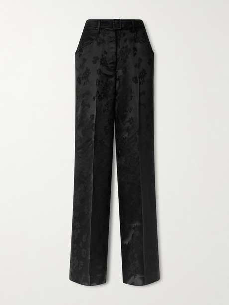 Die „Norman“ Hose von Gabriela Hearst besteht aus glänzendem Twill aus Seide, der sich mit einem eingearbeiteten Blumenmuster zeigt. Das hoch sitzende Modell wurde am geraden Bein mit Bügelfalten gestaltet, dank derer es optisch streckt, und mit einem passenden Gürtel ausgestattet. Tragen Sie den „Aleah“ Blazer, den Sie ebenfalls in unserer Auswahl finden, dazu.