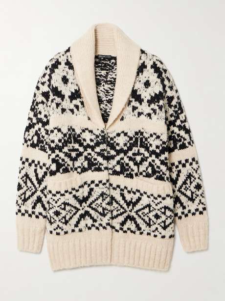 Dieser locker geschnittene Cardigan von James Perse hat ein Intarsienmuster im traditionellen Fair-Isle-Stil. Er besteht aus wärmender Merinowolle und zeichnet sich zudem durch einen legeren Schalkragen sowie breit gerippte Abschlüsse aus.