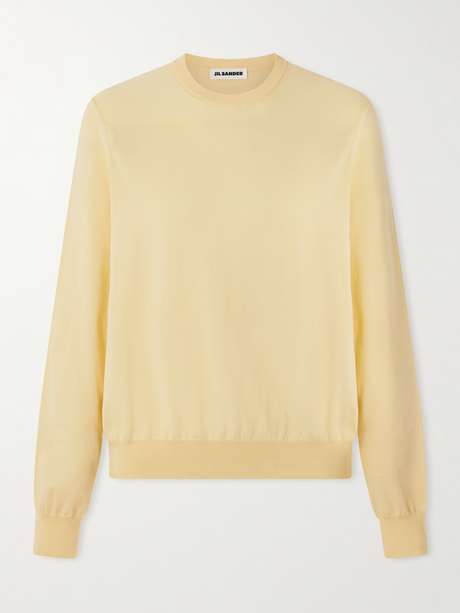 Verleihen Sie Ihrer Garderobe mit diesem pastellgelbem Pullover von Jil Sander eine frische Note. Das aus reiner Baumwolle gefertigte Modell wurde mit einem klassischen Rundhalsausschnitt designt, dank dessen es sich beim Styling einfach über Hemden oder T-Shirts ziehen lässt.